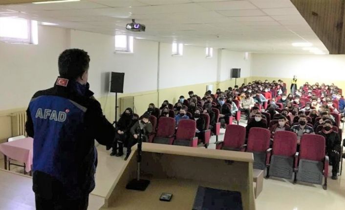 Erzincan Afet ve Acil Durum Müdürlüğü (AFAD) ekipleri, lise öğrencilerine ‘Afet Farkındalık ve Afet Gönüllülük Sistemi’ bilgilendirmesi eğitimi vererek farkındalık oluşturuyor.