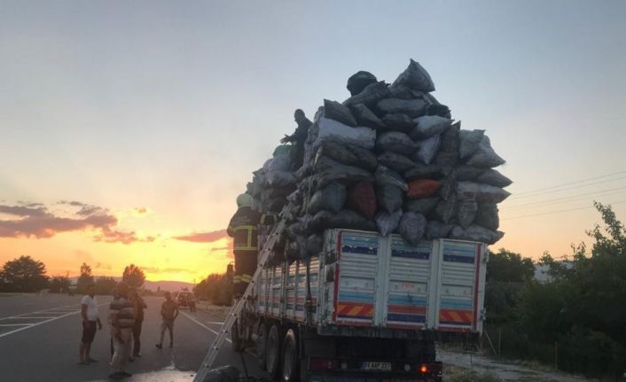 Erzincan-Erzurum karayolunda seyir halindeki mangal kömürü yüklü tırda yangın çıktı. Yangın itfaiye tarafından söndürülürken, kömürlerde maddi hasar meydana geldi.