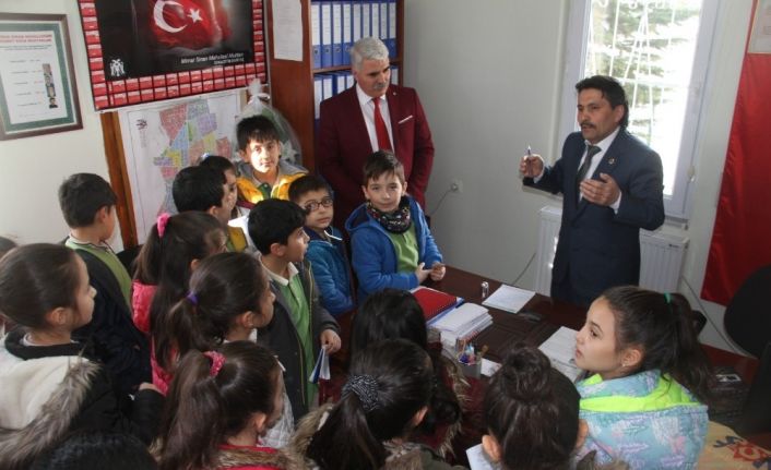Şehit Jandarma Uzman Çavuş Fırat Kılıç İlkokulu öğrencileri muhtarların görevlerini öğrenmek amacıyla ziyaret ettikleri Mimarsinan Mahallesi Muhtarı Cemalettin Demirtaş’a mahallenin sorunlarını anlattı.