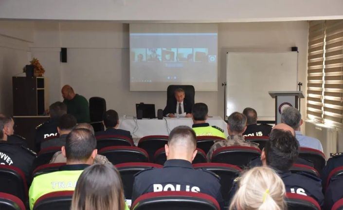 Güvenlik Şube Müdür Vekili Musa Sancar tarafından Emniyet Müdürü Kenan Kurt, emniyet müdür yardımcıları, şube müdürleri ve birim amirlerine brifing verildi.