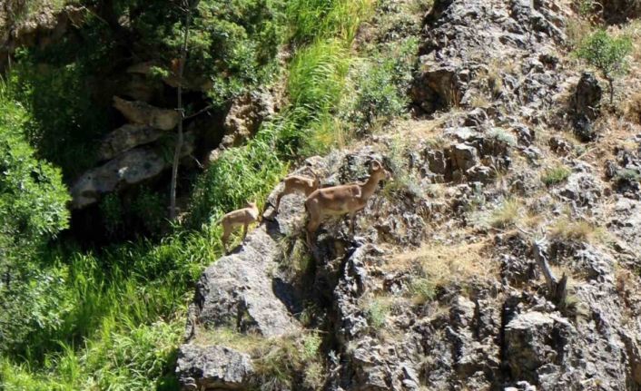 Erzincan ile Tunceli sınırında yer alan Munzur Dağlarında, nesli tükenme tehlikesi altında olduğu için koruma altına alınan ve avlanması yasak olan yaban keçileri, yüksek kesimlerdeki sarp kayalıklarda beslenirken görüntülendi.