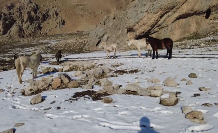 Erzincan-Tunceli arasında bulunan 3300 rakımlı Munzur Dağları’ndaki yılkı atları, doğal yaşam alanlarında görüntülendi.
