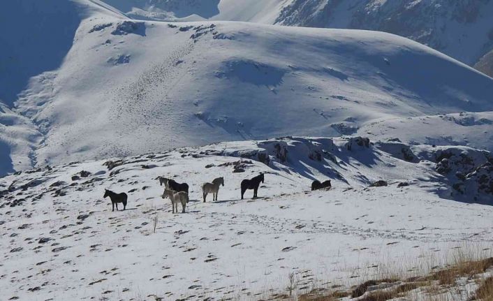 Erzincan-Tunceli arasında bulunan 3300 rakımlı Munzur Dağları’ndaki yılkı atları, doğal yaşam alanlarında görüntülendi.