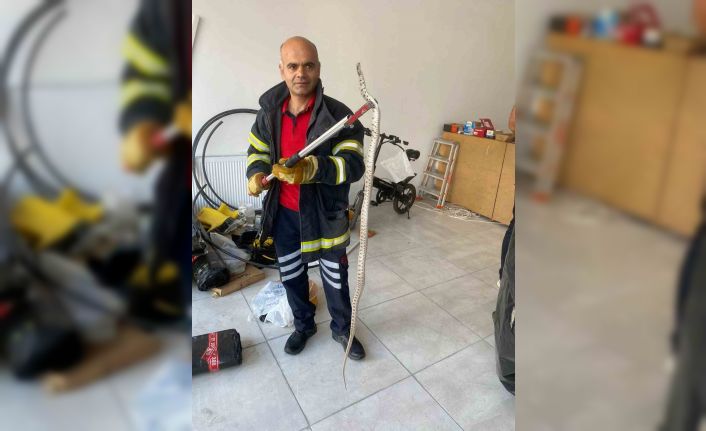 Erzincan’da bir ofise giren yaklaşık 2 metre uzunluğundaki zehirli yılan korkuttu.
