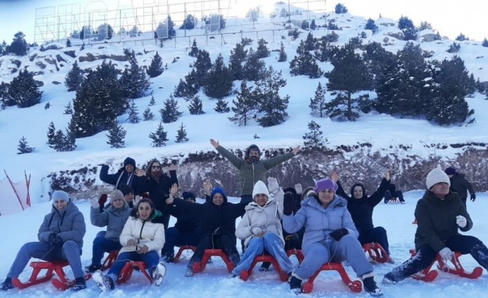 Daha sonra kızak pistinde kayan özel bireyler bir yandan kayak yaptılar bir yandan da karın ve doğanın tadını çıkardılar.