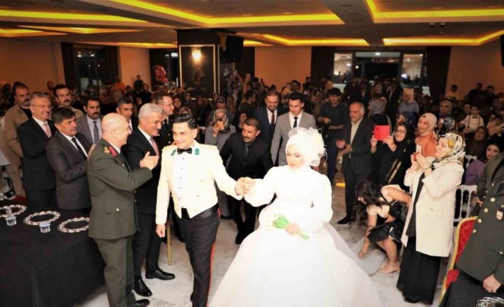 Kadir Erden ve Gülizar Çiftçi’nin nikah şahitliğini de yapan Vali Mehmet Makas, Gazi Piyade Komando Üsteğmen Kadir Erden ve Gülizar Çiftçi’yi tebrik ederek ömür boyu mutluluklar diledi.