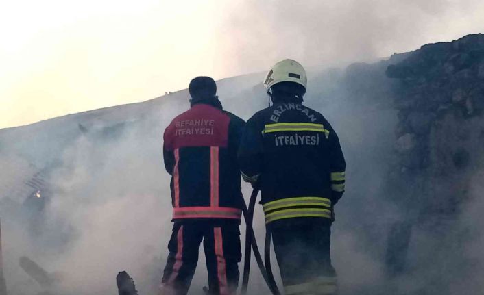 Erzincan’ın Refahiye ilçesinde çıkan yangında ev ile odunluk kullanılamaz hale geldi.