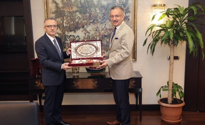 Erzincan Binali Yıldırım Üniversitesi Rektörü Prof. Dr. Akın Levent, Cumhurbaşkanlığı Strateji ve Bütçe Başkanı Naci Ağbal’ı makamında ziyaret etti.