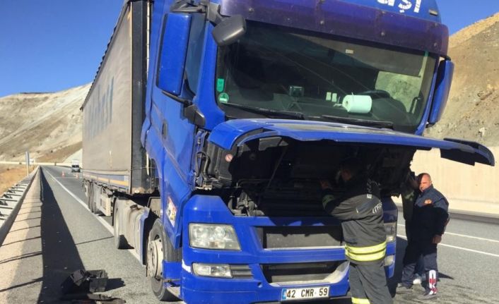 Çıkan yangında tırın motorunda maddi hasar meydana geldi.