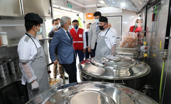 Erzincan Valisi Mehmet Makas, SYDV ve Türk Kızılayı Erzincan Şubesi işbirliğiyle oluşturulan aşevini ziyaret etti.