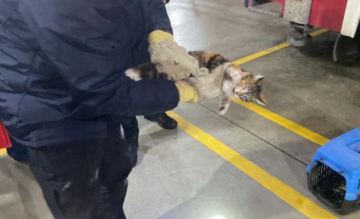 Erzincan’da veteriner kliniğine gitmemek için inat eden ve otomobilin torpidosunda sıkışan kediyi itfaiye ekipleri kurtardı.