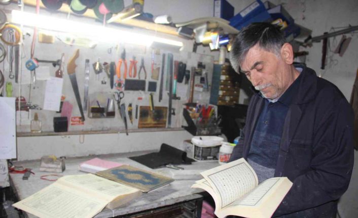 Erzincan’da İnönü Mahallesi Merkez Çarşısında 10 metrekarelik bodrum katta bulunan atölyesinde 45 yıllık ciltçilik mesleğini sürdürmeye çalışan Orhan Ersu, Ramazan ayı münasebetiyle işlerinde yoğunluk yaşadığını belirtti. Manevi duyguların yoğun yaşandığı bu günlerde 100 yıllık Kuran-ı Kerimleri yeniden okunabilir hale getiren cilt ustası Orhan Ersu, gelişen teknolojiye karşın unutulmuş işini sürdürmeye devam ediyor.