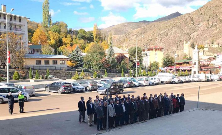 İspir Meydanında Atatürk Anıtına çelenk sunumu yapan muhtarlar saygı duruşunda bulundu, İstiklal Marşı’nı okudu.