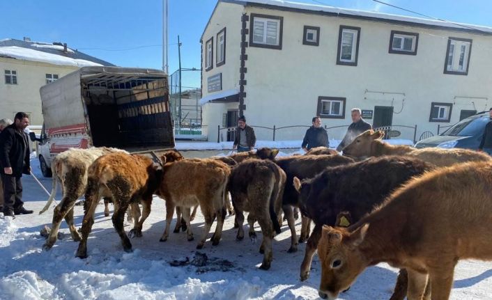 Yakutiye ilçesine bağlı Akdağ Köyü sakinleri aralarında topladıkları büyükbaş hayvanları satarak elde ettikleri geliri depremzedelere bağışladılar.