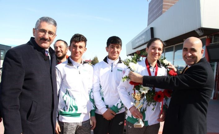 Uluslararası FIS Çocuk Kupası Alp Disiplininde ülkemize bir altın bir de bronz madalya kazandıran Ceren Reyhan Yıldırım, milli takımdan arkadaşları ile birlikte Erzurum Havalimanında çiçeklerle karşılandı.