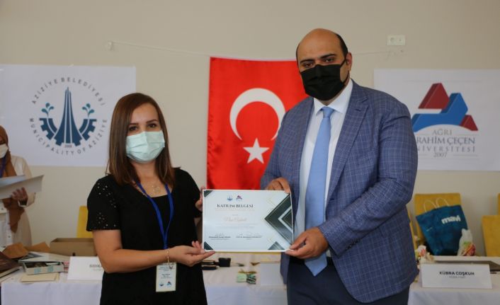 Aziziye Belediye Başkanı Muhammed Cevdet Orhan, Prof. Dr. Kamil Aydın’a ahşap üzerine yakma sanatıyla “Besmele-i Şerif ve Kelime-i Tevhid” yazılı Ay Yıldızlı tablo hediye ederken, açılış programının sonunda ayrıca katılımcılara sertifikaları da verildi.