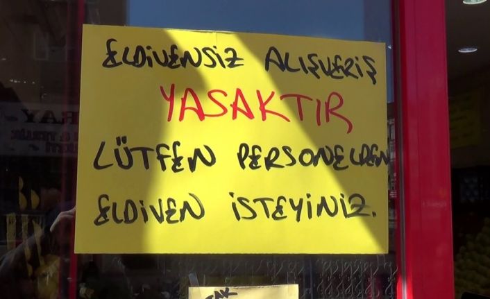 Dünyada ve Türkiye’de de etkisini sürdüren korona virüse karşı tedbirler artarak devam ederken, Erzurum’da bir manav eldivensiz alışverişi yasakladı.