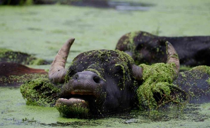 Erzurum’a birkaç kilometre uzaklıktaki Söğütlü köyündeki mandaların doğal ortamında beslenmeleri sonrası dere içinde geçirdikleri keyifli dakikalar, Tanzanya’nın Serengeti Milli Parkı’nı akıllara getiriyor. Sıcaktan bunalan mandalar saatlerce sudan çıkmıyor.
