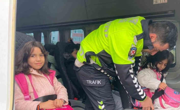 Erzurum’da polis özellikle servis araçlarında çocukların kemer takması konusunda daha dikkatli olması için eğitimler veriyor.