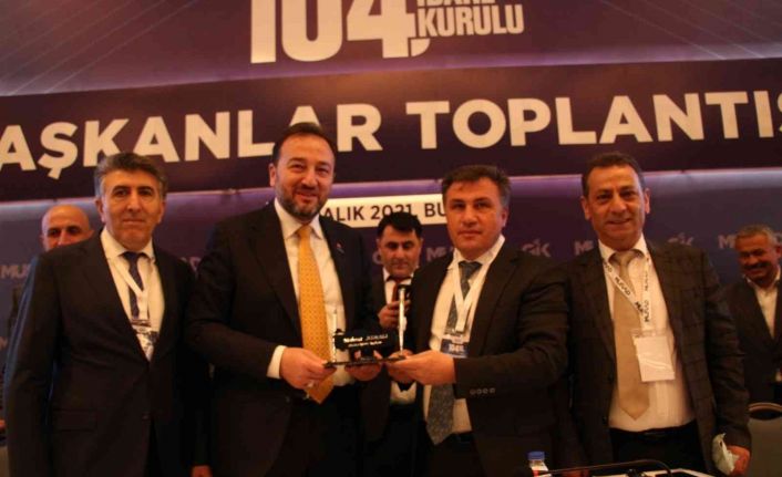 Bursa Şubesi’nin ev sahipliğinde 3-4 Aralık tarihleri arasında düzenlenen 104. Genel İdare Kurulu (GİK) toplantısının ikinci gününde gerçekleştirilen başkanlar toplantısında Genel Başkan Mahmut Asmalı’ya Oltu Taşından yapılmış isimlik hediye ettiler.