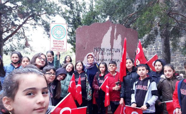 Erzurum Yakutiye Sabancı Ortaokulu 5-A sınıfı öğrencileri Nene Hatun’un mezarını ziyaret ettiler.