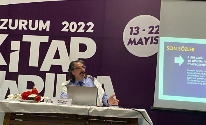 Erzurum Kitap Fuarında düzenlenen konferansta özellikle 19. Yüzyıldaki padişahların modern Türk Tiyatrosunun inşaasına doğrudan etki ettiklerini söyleyen Aydemir, “onların izinleri, destekleri, yardımları, katkı ve kazanımları olmasaydı modern Türk Tiyatrosunun inşaası o dönemde mümkün olmayacaktı” dedi.