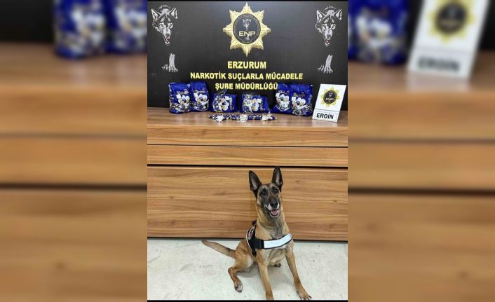 Erzurum Emniyet Müdürlüğü tarafından yapılan yazılı açıklama “Narkotik Suçlarla Mücadele Şube Müdürlüğünce uyuşturucu madde ticaret ve sevkiyatına yönelik yapılan münferit çalışmalar çerçevesinde narkotik madde arama köpeği Eris ile yapılan aramalarda şeker poşetleri içerisine gizlenmiş vaziyette 735 parça 8 kg 557 gram eroin maddesi ele geçirilmiştir. Konuyla ilgili 2 şüpheli hakkında gerekli işlemlere başlanılmıştır.” denildi.