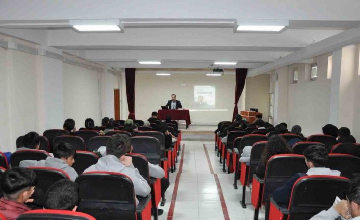 Türkiye Dil ve Edebiyat Derneği Erzurum Şube Başkanı Murat, Ertaş Sarıkamış Anadolu İmam Hatip Lisesi’nde öğrencilerle Türkçemizin Türk milleti için neden çok önemli olduğu konusunda sohbet etti.