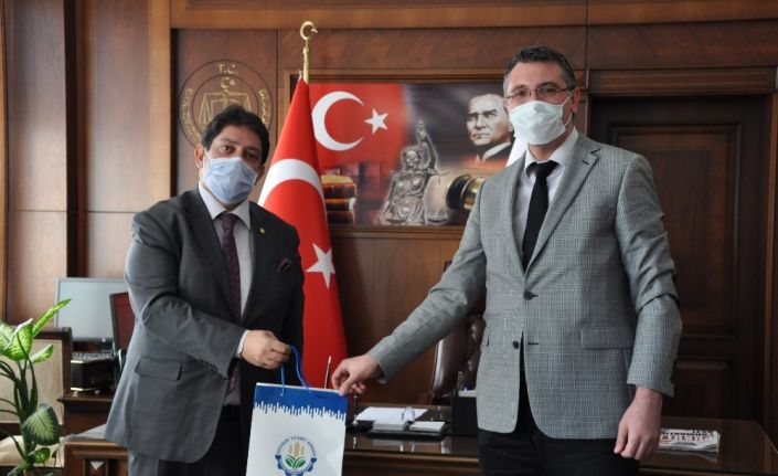 Erzurum Adliyesinde, Erzurum Cumhuriyet Başsavcısı Burhan Bölükbaşını ziyaret eden, Erzurum Ticaret Borsası Yönetim Kurulu Başkanı Hakan Oral, Türkiye Odalar ve Borsalar Birliği (TOBB) ve Erzurum Ticaret Borsası Başkanlığının katkıları ile hazırlanan gıda çeklerini Erzurum denetimli Serbestlik Müdürü Mehmet Ofluoğlu’nun da hazır bulunduğu toplantıda, Cumhuriyet Başsavcısı Burhan Bölükbaşına takdim etti.