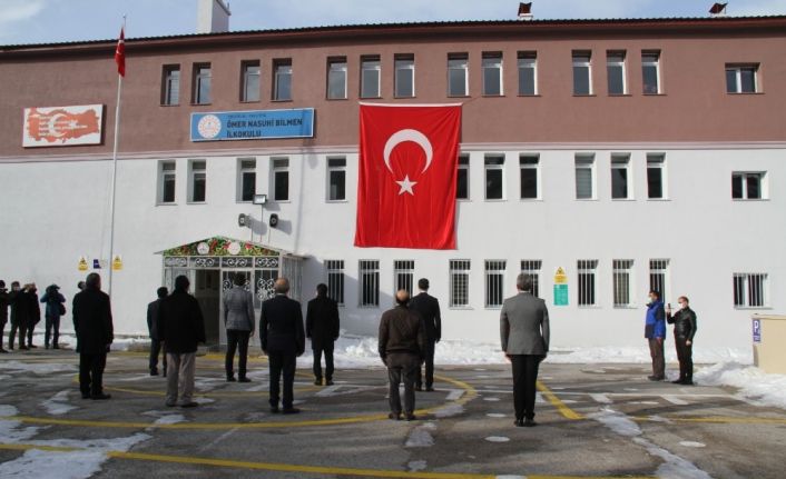 Erzurum İl Milli Eğitim Müdürü Salih Kaygusuz’un da katıldığı törende Yakutiye İlçesi Ömer Nasuhi Bilmen İlkokulu bahçesinde okul yönetimi ile birlikte düzenlenen İstiklal Marşı okundu.
