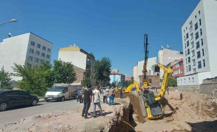 Erzurum şehir merkezinde bir binanın temel hafriyatının alınması esnasında iş makinesinin aniden devrilmesi ve ters dönmesi herkesi korkuttu.