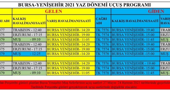 Planlanan programda Erzurum’dan Bursa’ya Pazartesi, Çarşamba ve Cumartesi günleri uçuşlar gerçekleştirilecek.