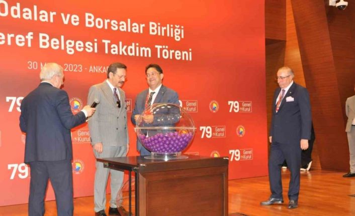 TOBB’un 79. Olağan Genel Kurul’u kapsamında düzenlenen Hizmet Şeref Belgesi Takdim Töreni bugün Ankara’da yapıldı. Program kapsamında TOGG marka makam aracı talep eden oda ve borsalar arasında çekiliş yapıldı. Çekiliş sonrası Erzurum Ticaret Borsası ve Ticaret Sanayi Odası 1’er TOGG Oltu almaya hak kazandı.