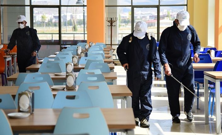 Covid-19 pandemisi nedeniyle bir buçuk yıldır ara verilen yüz yüze eğitime 27 Eylül itibariyle başlayacak olan ETÜ, öğrencilerin ve personelin sıklıkla kullandığı alanlarda salgın tedbirlerini arttırdı. Bu kapsamda Erzurum Yakutiye Belediyesi dezenfektan ekibinin desteğiyle derslikler, laboratuvarlar, kütüphaneler, kantinler, yemekhaneler ve dinlenme salonları gibi toplu kullanım alanları dezenfekte edilerek insan sağlığına uygun hale getirildi.