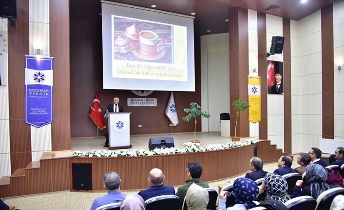 Edebiyat Fakültesi Dekan Yardımcısı Doç. Dr. Uğur Akbulut konuşmacı olarak katıldığı konferansta, “Türk kültüründe kendine özgü bir yere sahip olan kahve, 16. yüzyılın ikinci yarısından itibaren kahvehanelerin açılmasıyla beraber yaygınlaşmış, her kesimden insanı bir araya getiren toplumsal bir içeceğe dönüşmüştür. Kahvehaneler, zaman zaman toplu olarak kapatılma kararlarıyla karşı karşıya kalsalar da her seferinde yeniden ve daha fazla sayıda açılmışlardır” dedi.