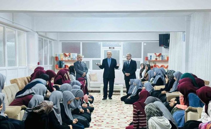 "1001 Hatim Dua Programı" için Erzurum’da bulunan DİB Başkan Yardımcısı Dr. Hazırlar, İl Müftüsü Yaşar Çapçı ve Palandöken İlçe Müftüsü Ahmet Gözcü ile beraber; Palandöken İlçe Müftülüğü’ne bağlı Yenişehir Yatılı Kız Kur’an Kursu’nda hafızlık eğitimi alan öğrencilerle buluştu. Burada hafızlarla hasbihal eden Başkan Yardımcısı Dr. Hazırlar, öğrencilere yönelik hafızlığın önemine dair bir konuşma yaptı. Başkan Yardımcısı Hazırlar, Kur’an kursu öğreticileriyle yaptığı toplantının ardından ziyaretini tamamladı.