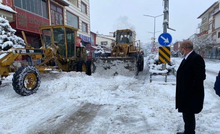Karla mücadele çalışmasında görev alan 60 personel, şehirde kar temizleme çalışmalarına katıldı.