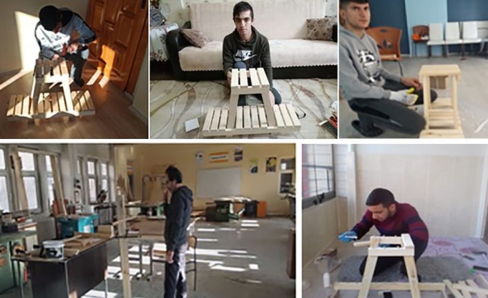 “Bu amaçla aslında yüz yüze eğitimde okul atölyesinde yaşayacakları deneyimleri öğrencilerin evlerinde yaşamaları planlanıyor. Öğrencilere iş parçalarının okul atölyelerinde ve gerçek ortamlarda canlı öğretilerek hazırlanan materyallerin daha sonra öğrenciler tarafından monte edilerek gerçeğe dönüşmesi sağlanacaktır. Sınıf düzeylerine de bakıldığında Yönetmelik gereği bu öğrencilerin işletmelerde haftanın üç günü bire bir uygulamalı eğitim almaları gerekmektedir. Bu dezavantajlı durumu öğrencilerin lehine çevirmek için farkındalık oluşturması amaçlanmaktadır. Projenin uygulanmasının ana temelini EBA canlı dersleri oluşturulurken bu amaçla haftalık ders programına uygun olarak EBA’da atanan canlı ders saatlerinde, teorik anlatımlar için evden, okuldaki sınıflardan, uygulamalar içinse yine okuldaki Mobilya ve İç Mekân Tasarımı atölyelerinden yararlanılacaktır. İş parçalarının kargo yoluyla öğrencilere ulaştırılmasından sonra da yine öğrencilerin evlerinde yapacakları çalışmalar EBA canlı ders uygulamasıyla yapılacaktır. İşlem basamaklarının yapılması bire bir uzaktan işaret dili anlatımıyla sağlanacak, gerekli durumlarda veliler ile telefon bağlantısı kurulacaktır. Öğrencilerin işitme engelli olmaları dolayısıyla EBA canlı dersler sırasında ya da diğer zamanlarda sosyal medya uygulamalarından önceki tecrübelerden hareketle destek alınacaktır. Öğrenci ve veliler ile sürekli iletişim halinde olunacaktır. Çok önemli anlatım ve uygulama çalışmalarının olduğu canlı dersler ve yapımı uzun sürebilen uygulama çalışmalarının video kaydı yapılarak zamanın daha iyi kullanılacağı projede ders dışı zamanlarda da öğrencileri destekleme ve güdüleme faaliyetleri sürdürülecektir. Atölyede yapılacak olan tüm makine ve el işçiliği uygulamaları öğrencilere canlı performansla aktarılacaktır. Bu amaçla ihtiyaç duyulan iş ve işlemler için önceden hazırlık yapılacaktır.”