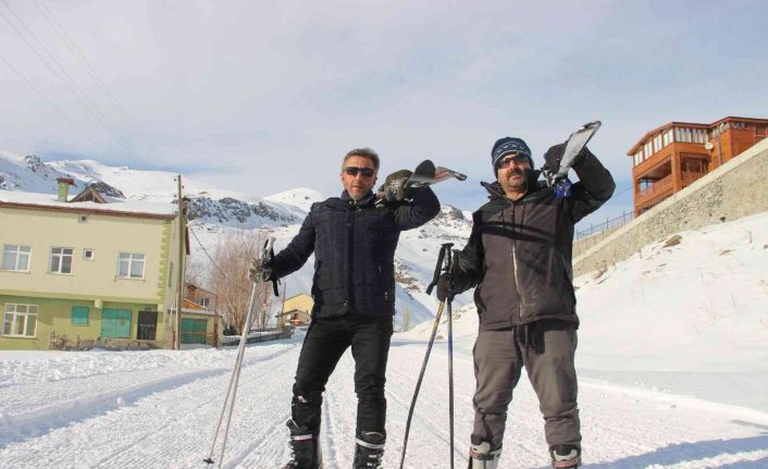 İspir Doğa Sporları Derneği Başkanı Hasan Ceylan ile dernek üyeleri Ersin Arslan, İsa Bakar ve Adem Çakır, İspir ilçesinde kış sporlarının da yapılabileceğine dikkat çekmek amacıyla Ovit Dağı eteklerinde kayak yaptılar.