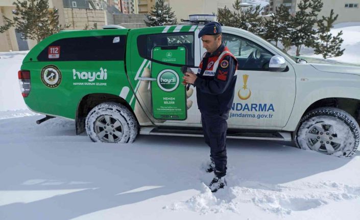 Kar yağışının etkili olduğu Erzurum’da Jandarma ekipleri yaban hayatı unutmadı.