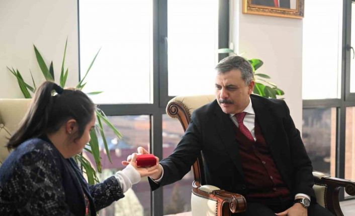 Bu içten mesajı karşılıksız bırakmayan Vali Çiftçi, Şenkaya ilçesi ziyaret sırasında Kısmet’e hediyesini verdi.