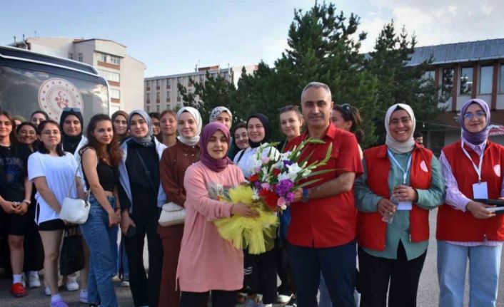 ‘Anadoluyuz Biz’ projesi kapsamında Giresun’dan gelen kız öğrenciler, Erzurum’da folklor gösterileri ve çiçeklerle karşılandı.