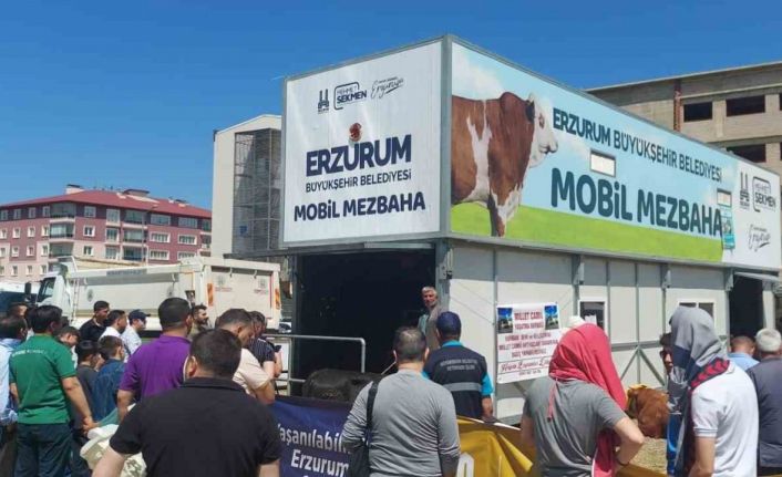 Tüm ikazlara rağmen boş arsalarda, sokak araları veya apartman bahçelerinde kurban kesimine sıkça rastlanan Erzurum’da, Büyükşehir Belediyesi beş yerde kurduğu mobil kesim konteynerleri ile vatandaşlara rahat ve hijyen imkanı sunan ortamlar oluşturdu. Büyükşehir Belediyesi’nin Doğu Anadolu Canlı Hayvan Borsası, Dadaşkent , Yıldızkent, Yenişehir Girişi ve Şükrüpaşa’da mobil kurban kesim konteynerlerine vatandaşların yoğun ilgi gösterdiği gözlendi. Bayramın birinci günü kurbanlıklarını daha önce yaptıkları başvuru sırasında kendilerine belirtilen saatte getiren vatandaşlar bin 950 TL karşılığında etlerini teslim aldılar.
