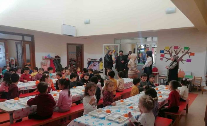 Uzundere İlçe Milli Eğitim Müdürü İbrahim Yılmaz Anaokulunda verilen yılın ilk yemeğine çocuklara eşlik etti, çocuklarla yemek sevincini paylaştı.