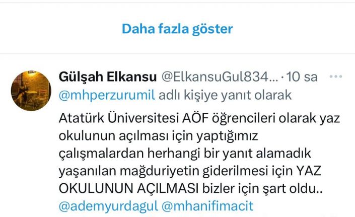 Bunun üzerine Yurdagül, Atatürk Üniversitesi Rektörü Prof. Dr. Ömer Çomaklı ile konu hakkında yaptığı görüşmeyi yayınladı. Öğrencilerin taleplerine sessiz kalmayarak, ilgili mercilere ilettiğini ve konunun olumlu sonuçlanması için çaba sarfettiğini yazan Adem Yurdagül, gençlerin büyük beğenisini aldı.