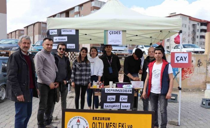 Oltu Mesleki ve Teknik Anadolu Lisesi öğrencilerinden Muhammet Ali Yıldız Tekin, ‘’Bugün pazara geldik çayımızı demledik, küçükte olsa depremzedelere faydamız olsun amacı ile çay satıyoruz. Bizlere destek çıkan herkese çok teşekkür ediyoruz’’ dedi.