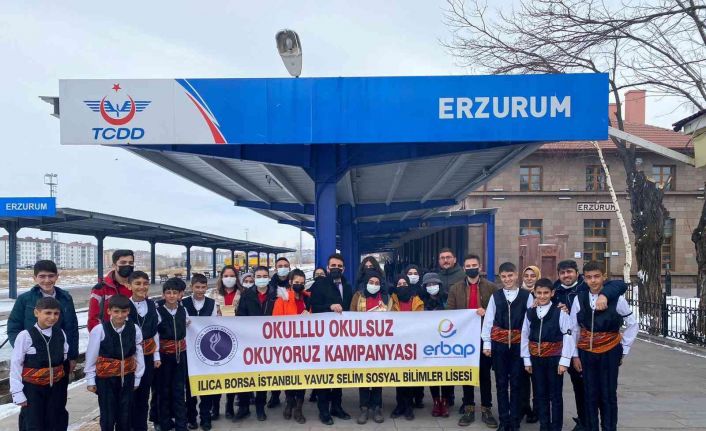 Ilıca Borsa İstanbul Yavuz Selim Sosyal Bilimler Lisesi öğrencileri ‘Okullu Okulsuz Okuyoruz’ projesi kapsamında Erzurum Tren Garında Kars’tan İstanbul’a giden yolculara kitap ve dergiler dağıttı.