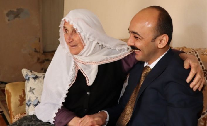 Oltu Kaymakamı İbrahim Gökmen, yalnız yaşayan yaşlı nineyi evinde ziyaret etti.