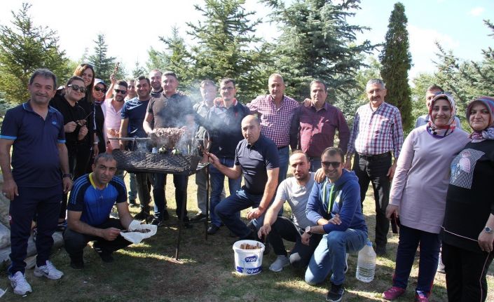 Bu arada şişin başına geçen Gençlik ve Spor İl Müdürü Fuat Taşkesenligil cağ kebabı keserek kendi elleriyle şube müdürlerine ikram etti.