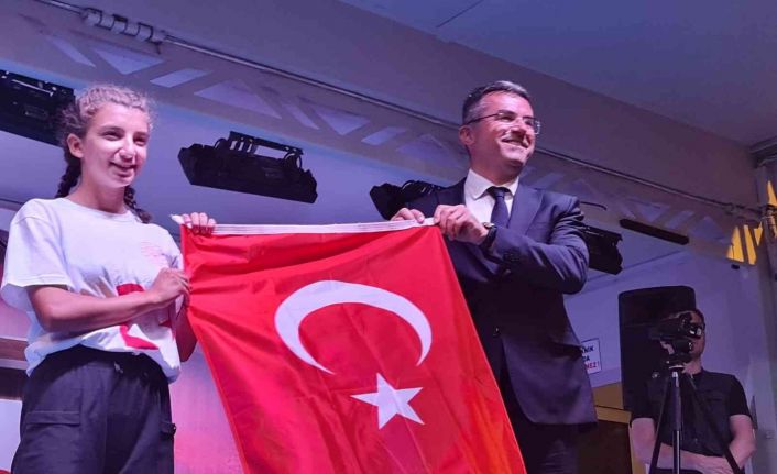 Sancak koşusuna katılan atletler taşıdıkları Türk Bayrağını Erzurum Valisi Okay Memiş’e teslim etti. Vali Memiş de atletleri tebrik ederek Ay-yıldızlı bayrağı öperek teslim aldı.